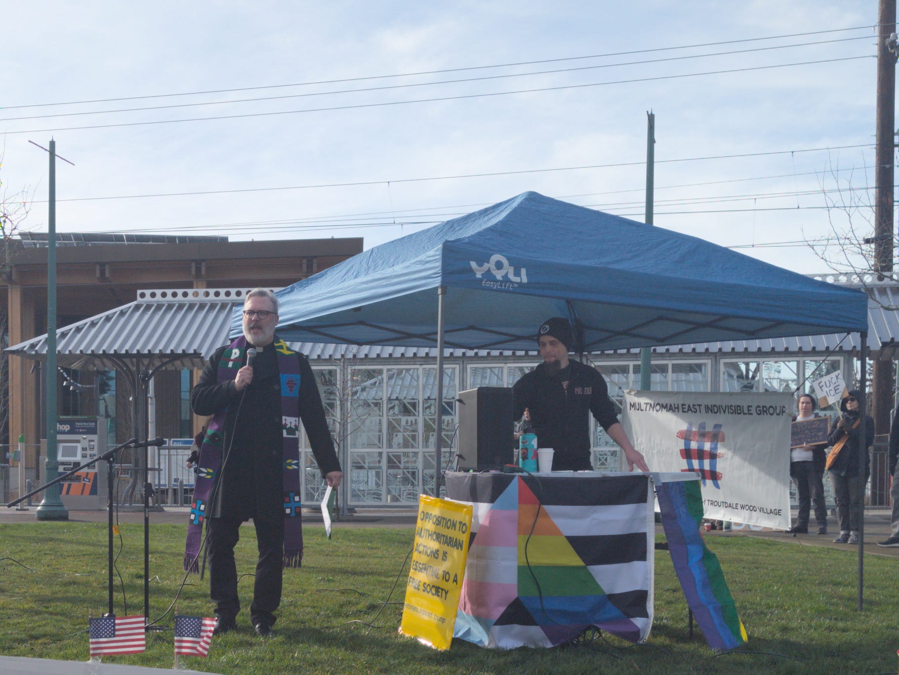 Local pastor Rev. Joshua Dunham, who previously called on the Gresham City Council to pass an emergency declaration spoke at the “ICE out for Good” rally. Dunham expressed regret that “it took the deaths of Renee and Alex, two white folks, for us to wake up because we know we know that they were not the first to lose their lives at the hands of ICE and sadly won’t be the last.”