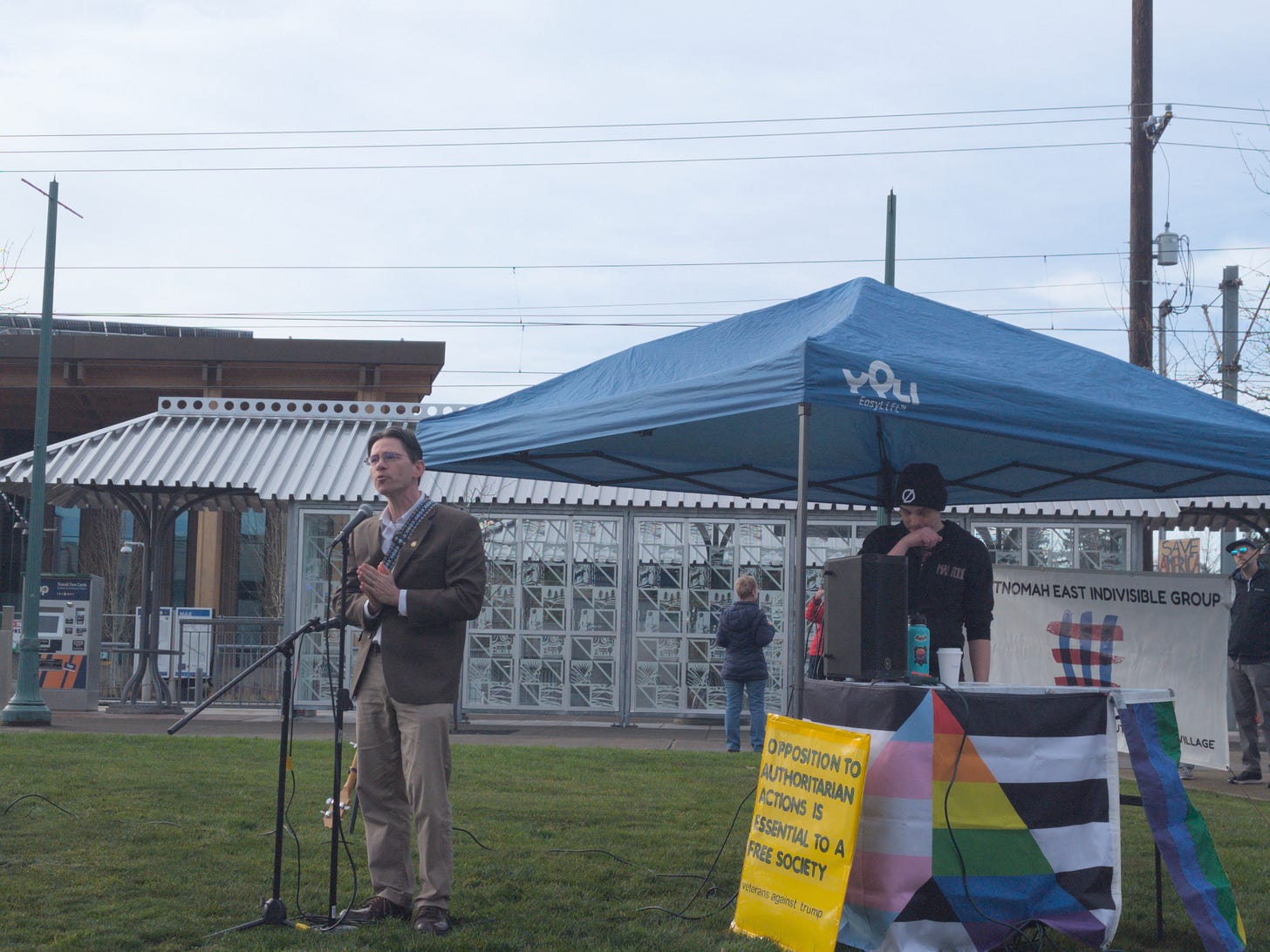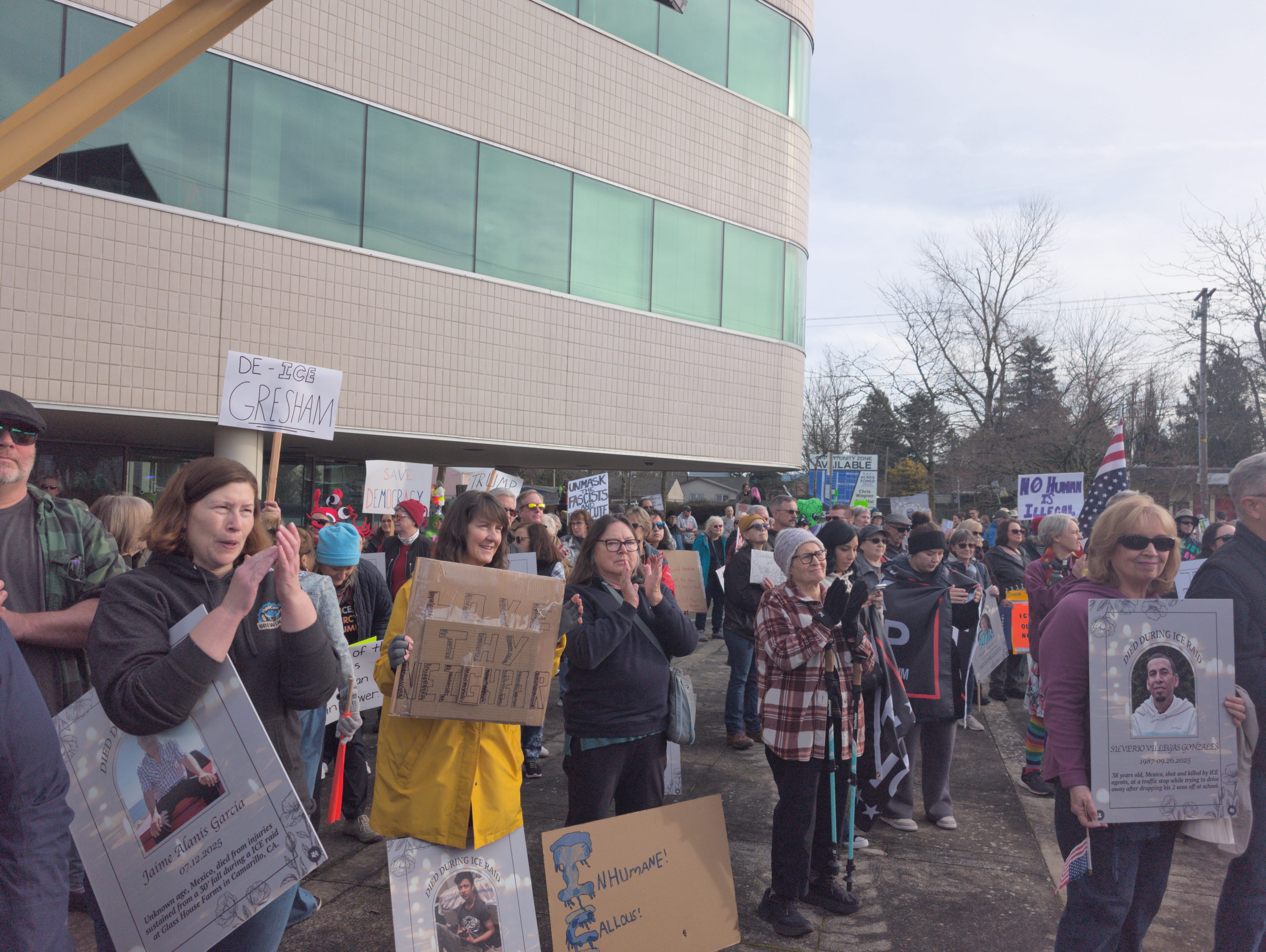 The protest came after the Gresham City Council passed an emergency declaration over the community impacts of immigration enforcement the previous week after sustained community pressure to do so. The speakers at the rally included two members of the Oregon legislature: Oregon State Senator Chris Gorsek and State Representative Zach Hudson, Joshua Dunham a local pastor, and Raquel Barajas an immigrants rights advocate.